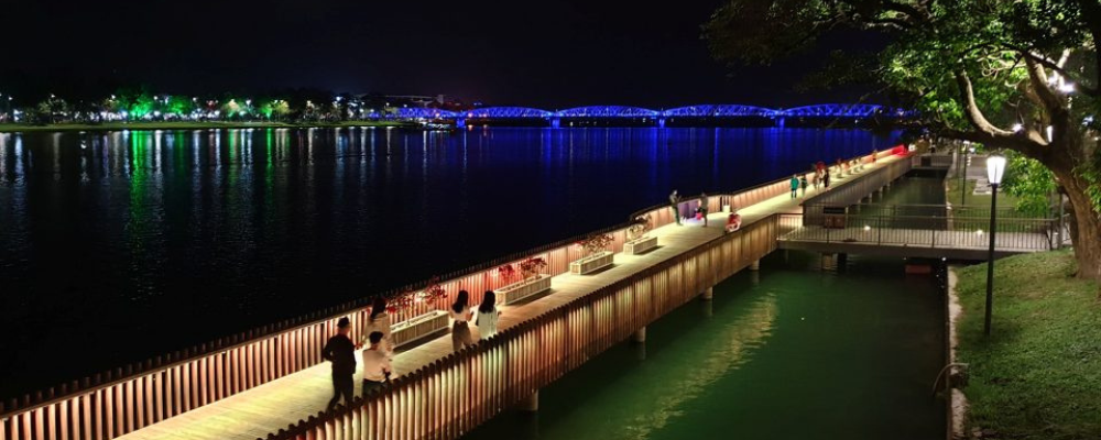 Là nổ lực của tình hữu nghị Việt Nam – Hàn Quốc, công trình được khởi công từ năm 2018 nằm trong Dự án Quy hoạch chi tiết hai bờ sông Hương có tổng vốn 6 triệu USD do Chính phủ Hàn Quốc tài trợ không hoàn lại 100%; trong đó, dự án thí điểm đường đi bộ trên sông Hương có tổng vốn đầu tư gần 53 tỷ đồng.