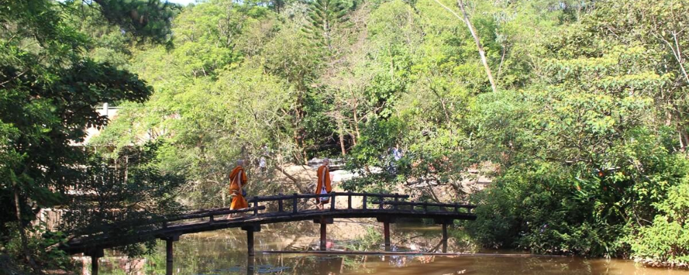 cảnh núi rừng và thung lũng xung quanh, đặc biệt đẹp vào lúc bình minh hoặc hoàng hôn. Khí hậu mát mẻ, trong lành, tạo cảm giác thư thái và tĩnh tâm cho người tham quan.
