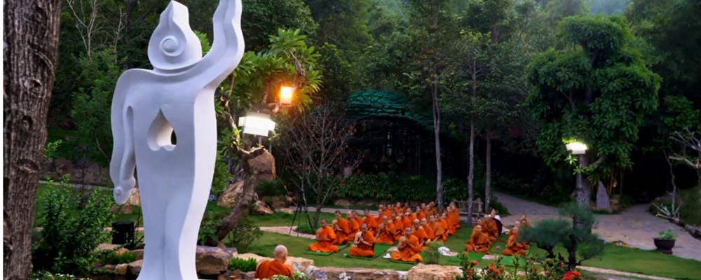 Không gian yên tĩnh, thích hợp cho việc thiền định và tìm lại sự an lạc trong tâm hồn. Những khu vực như am cốc, tịnh xá, và các bàn thờ Phật được bài trí đơn giản nhưng trang nghiêm, giúp người viếng thăm dễ dàng cảm nhận được sự thanh tịnh.
