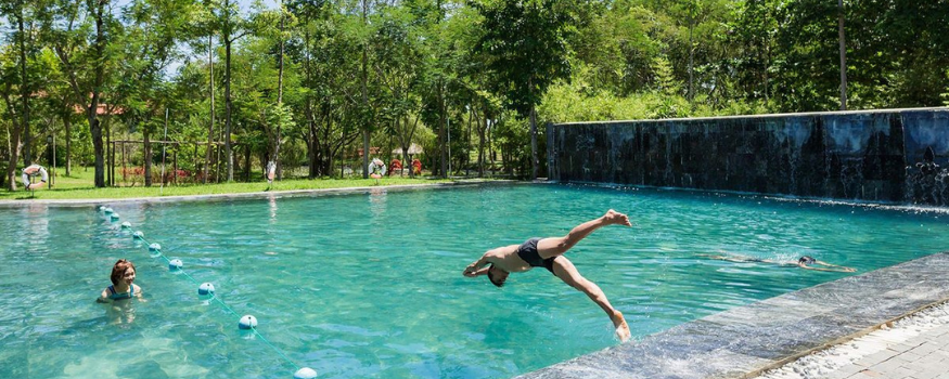 Khu nghỉ dưỡng Alba Thanh Tân bao gồm nhiều tiện ích và hoạt động đa dạng, từ tắm suối khoáng nóng, massage, spa trị liệu đến các trò chơi cảm giác mạnh như zipline, highwire, cùng nhiều dịch vụ khách sạn và nhà hàng chất lượng.